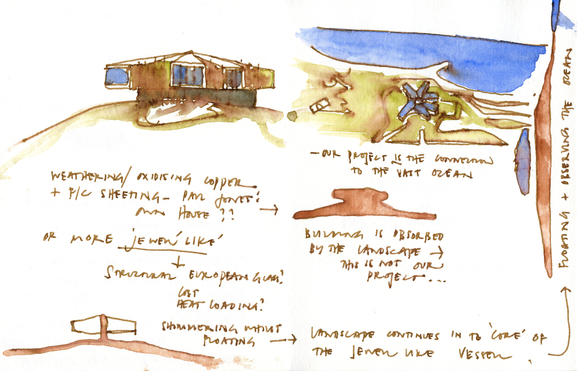 Cottesloe Beach has a place within the identity of all West Australians. It is here that we publicly gather and look out over the Indian Ocean reflecting on our heritage and the vast land at our backs that separates us from other Australians. It is in this moment that we realise our isolation and the need to maintain our own community. Cottesloe Surf Lifesaving Club is the anchor of community activity at the beach, its members have served, protected and celebrated beach culture with the wider public. Our proposal for the new club seeks to reinforce the relationship of the Club to the community through the idea of their vigilance over the beach. The building is defined by a cluster of pavilions that float over an articulated landscape allowing direct links from the street through to the beach. Each pavilion is orientated to frame panoramic views across the ocean and more intimate views of Cottesloe and the beach; the architecture is watching you. The relationship to landscape is critical, our scheme embraces current patterns of use (paths and tracks) and establishes a relationship between manufactured and natural ground by rehabilitating the eroded natural landscape and respecting the indigenous heritage of the site. A new ground surface is created beneath and around the building from weathered recycled timber, limestone paving, grassed seating areas and swaths of local native plants. The pavilions hovering above are composed radially around a vertical internal courtyard, which connects back to the new ground, linking the public and private spaces of the building. This central space contains the exhibition of the clubs� history and forms an orrery tracking the sea and landscape beyond the architecture and the life of the beach that occurs within the view.