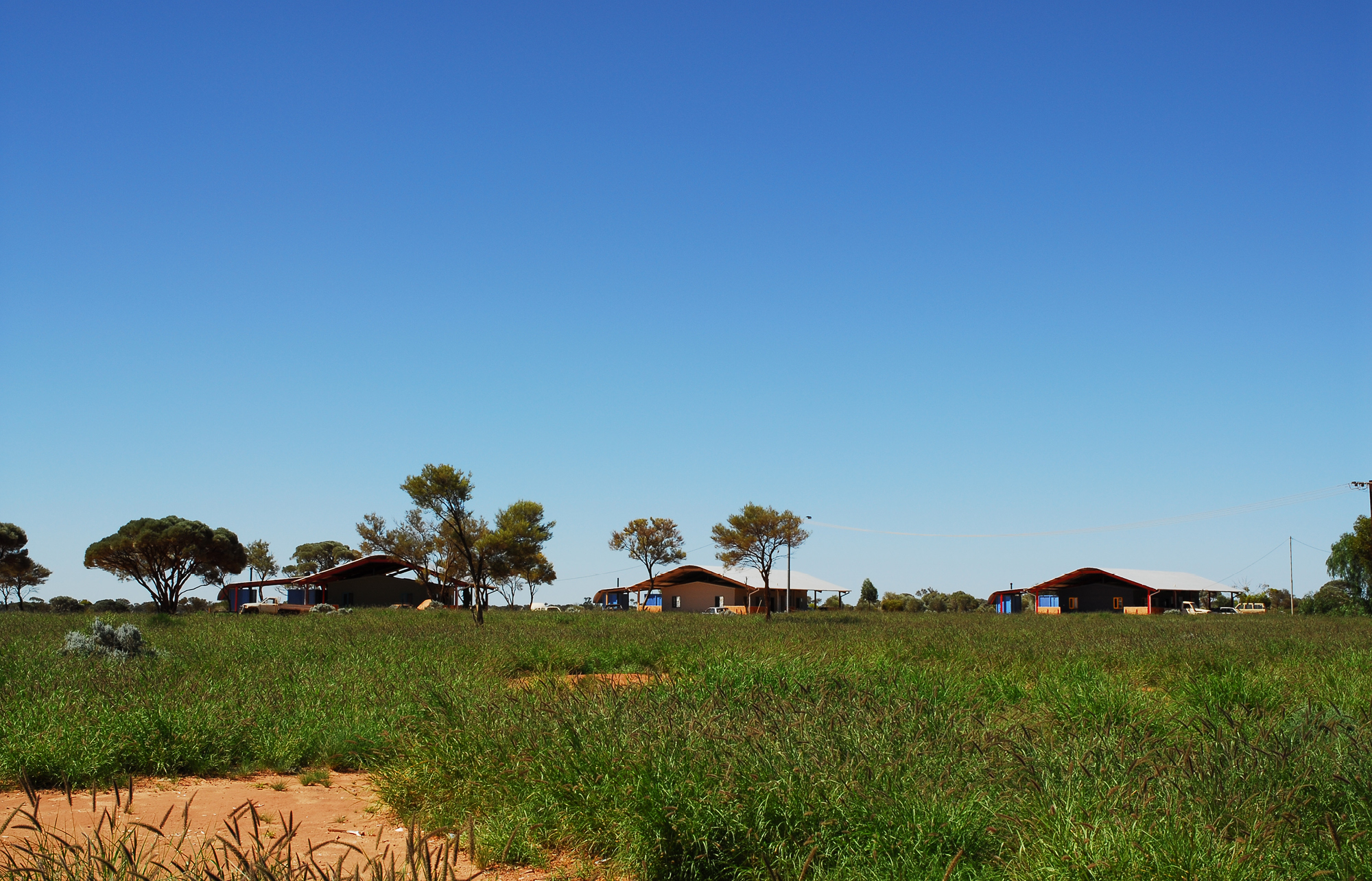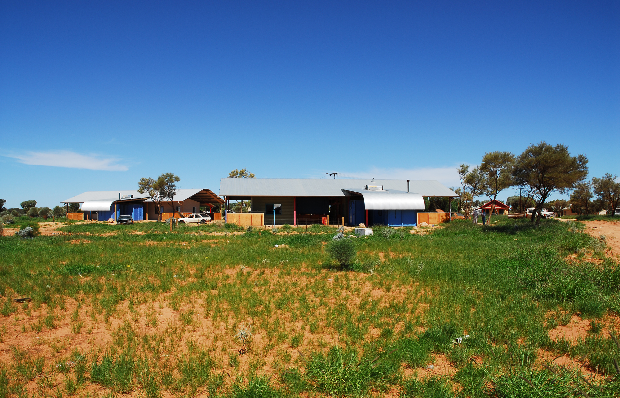 Tjuntjunjara Community Houses, located in the Great Victorian Desert, were developed in close consultation with the Spinifex people over 3 separate workshops involving all members of the community and a team including an anthropologist, architect, engineer and community staff members. Two final designs were selected; an āLā shaped plan form and a centric plan form with a breezeway living area. These buildings were designed to be simple and robust, and to support a variety of living patterns around and inside the buildings parts. All of the houses align on a radial axis focusing on the new community meeting shelter. Locations of individual houses relate to the actual direction of the family members specific homeland.