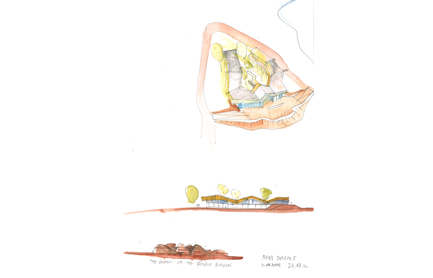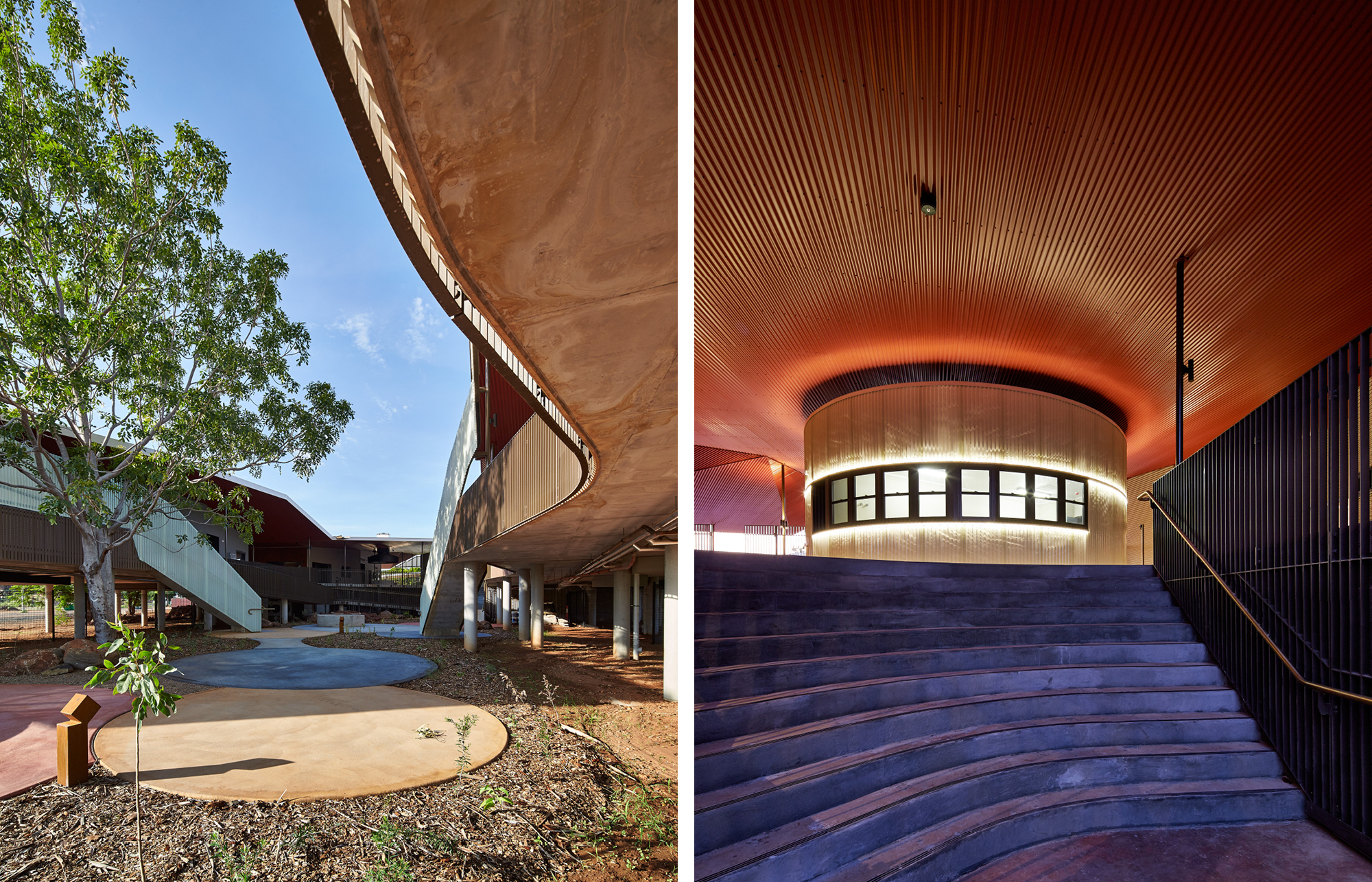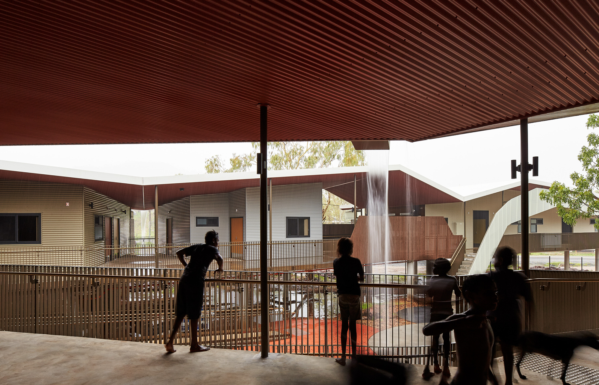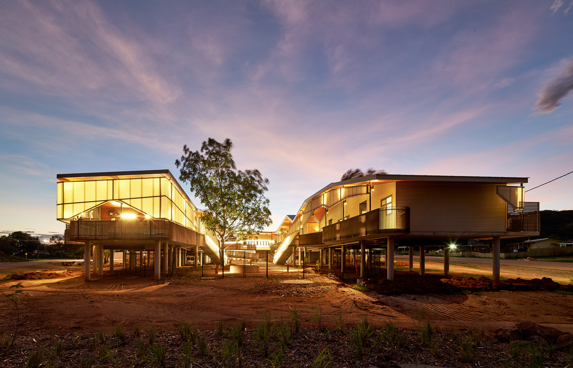 On the 13th of March 2011 the remote Aboriginal Community of Warrmarn was struck by devastating floods that overwhelmed much of the town and damaged or destroyed facility buildings, houses and the existing aged care hostel. Some 350 Gija People were forced off their homelands until the houses and infrastructure were re-built over the next two years. The Walumba Elders Centre was born out of this disaster. The building was sited adjacent to the community school – to act as a focal point for bringing the community back together and to aid in the transmission of the unique Aboriginal Lore, Gija Language and cultural knowledge to the younger members of the community. The facility provides self care accommodation to some residents and high-level care to others. To avoid potential future flooding activity the centre is built 2.4 metres above the natural ground level and is conceptually linked with the idea of a bridge. The concept relates to bridge not only as physical infrastructure but also as passage of knowledge between generations and as a place of care and respite before the possibility of passing from this existence to the next. The facility seeks to address and manage complex and critical factors inherent in Aboriginal culture such as gender separation, access to outdoor spaces both public and private, supporting Lore and Culture activities including ceremonies that may involve fire and smoke, avoidance relationships including son-in-law/ mother-in-law relationships, inter-family conflict issues and mortuary practices- called ‘sorry business’.
